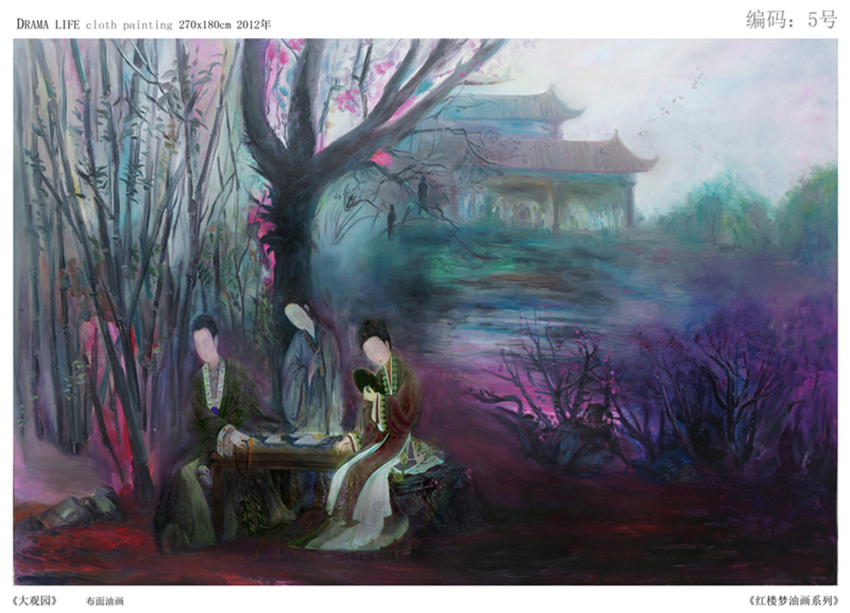 可以说,《红楼梦境系列》,展示了画家深厚的人文关怀,色调绮丽,笔触缥缈,构图虚化,显示出幻之意境。2015年8月12日—8月26日,观者将会有一种独特的绘画语言—意境和结构呈现出来的视觉体验。
