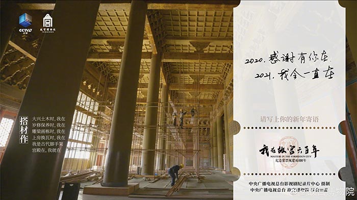 在《我在故宫六百年》中,故宫人痴心寻访海月贝壳,按照传统工艺绘制保存彩画小样,在换好的构件上标注更换日期……这些,都体现了一颗久违的、炽热的匠心。长春宫游廊彩画绘制;养心殿扶脊木更换;角楼、乾隆花园古华轩修缮等,则展现了匠人高超的技艺和智慧。可以说,片中故宫的“丹宸永固”大展、养心殿研究性保护项目、古建岁修保养的背后,站着的是几代故宫人,也正是因为这些人,古老宫殿修缮的技艺和智慧才得以丰富发展,代代延续。