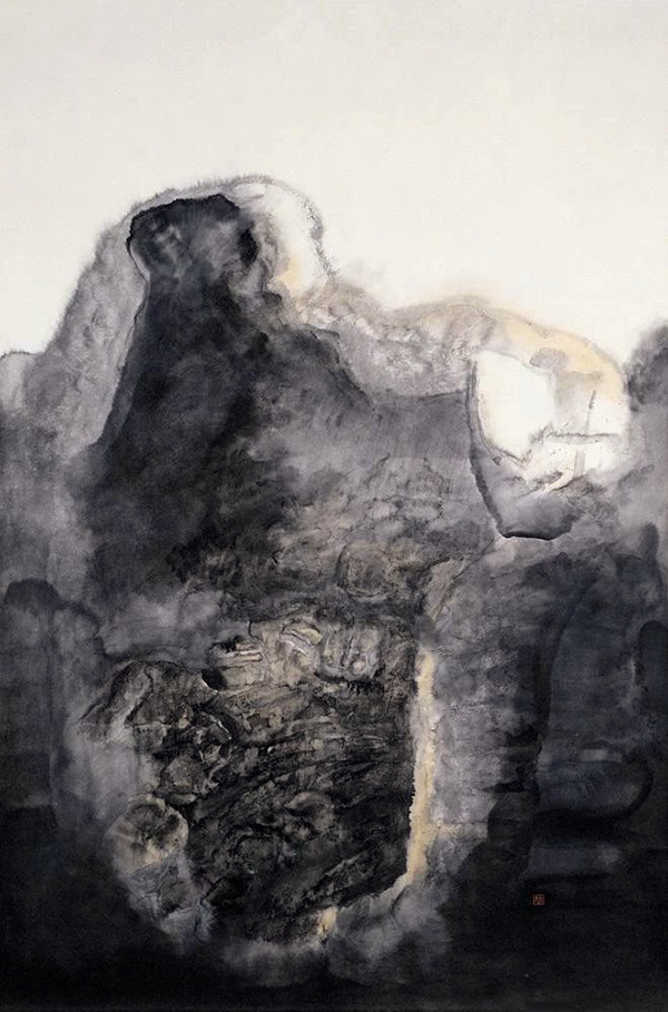 应该说,方土的整个艺术追求建立在水墨在自觉基础上,无论是他对“大”和“重”的选择,还是迷恋于恣肆的空间表现,或是趋向于精神的空灵境地,其逻辑起点是水墨情结及对水墨的颇有才份的感情和把握。就目前看来,方土的盲点和难点仍在于前文所提及的这类画家所共同面对的悖论。因此,在方土的这几个系列作品中,不难发现,其不彻底的个人主义倾向与理想中的达观心态在对峙中相互抵消,在抵消和冲突中确认其当代的意义和地位。这就是那些勇于冲破和超越传统的“后传统型”艺术家在当代的独特位置,这也是我选择方土来作阐释的课题价值。