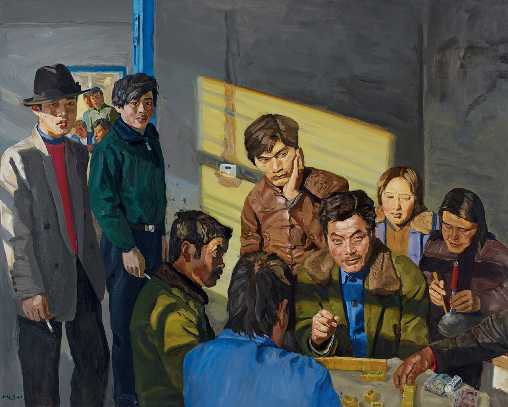 因此,毫不意外,这些画通常以人为中心。画中人基本上是安静的,没有激烈的动作(除了运动和锻炼之外),他们目光懒散,表情倦怠,沉浸在画面的内部,沉浸在自身之中。丽面上各种各样的事无巨细的背景(器具、置身于其中的空间、人的条件和自然环境等)堆积起来,似乎烦琐、不安、倦怠和快乐也在此时此地相应地堆积。它们如此之饱满,如此之细致,如此之沉浸在自我的内在性中,似乎在全力排挤外部世界的希望空间,也在排挤外部世界的意义的对绘画的注入,排挤任何的诗意想像对绘画的浪漫入侵。超越性被挡在画框之外了。正是在这个意义上,一种新的绘域语言出现了:绘画在封闭绘画自身的疆界。在绘画的疆界内不是没有意义,而是没有外来的意义。这个疆界不是剔除了意义的疆界,而是剔除了超越性意义的疆界,剔除了抒情性的疆界——抒情性被剔除得干干净净。抒情性,是(以人为主题的)中国油画历史的宿命,尽管在二十世纪有各种各样的历史变奏交替地上演这个绘画宿命:借助于战斗而抒情,借助于革命而抒情,借助于文化反思而抒情,借助于乡土和异域风光而抒情,借助于美和真理而抒情,借助于历史追忆而抒情。这些抒情绘画,和绘两中的抒情人物总是无法摆脱浪漫、伤感、纯真、苦痛和喜悦。紧张、残酷以及对未来的期冀在画面上以肿胀的形式存在。