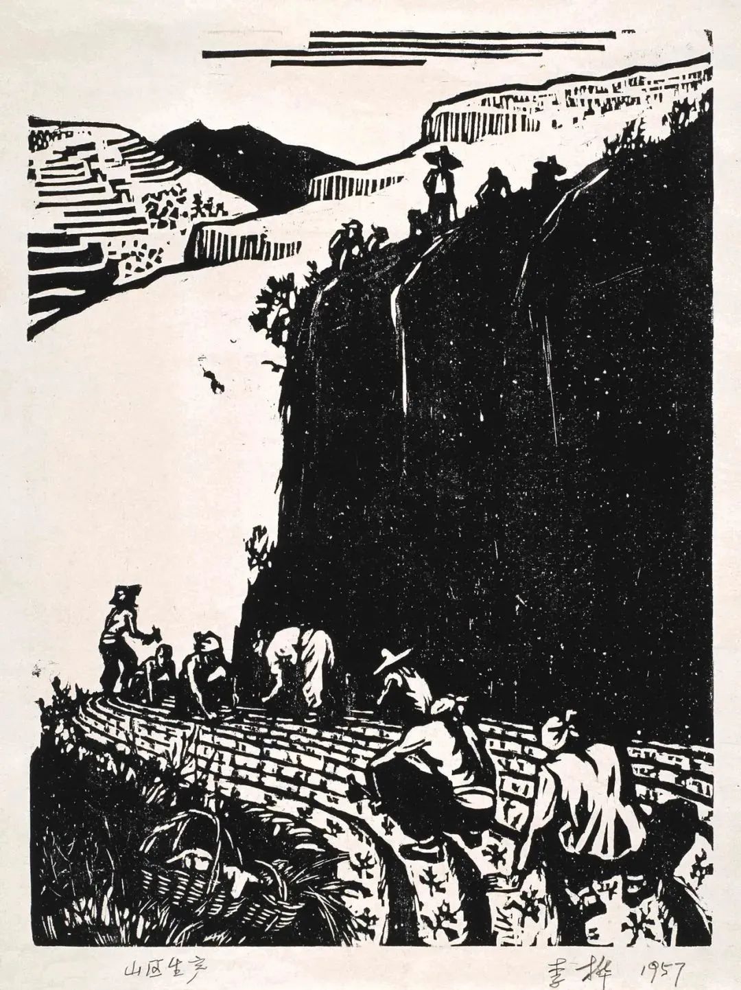 李桦《山区生产》 40.3×30cm 木版单色 1957年 中央美术学院美术馆藏