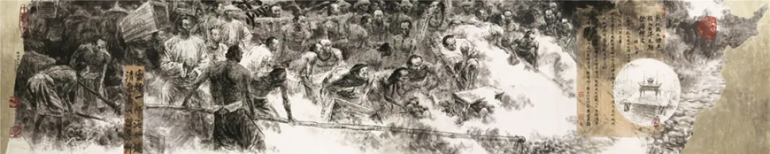 李延声 销烟气如虹(魂系山河长卷之三) 纸本设色 280cm×1360cm 1997年
