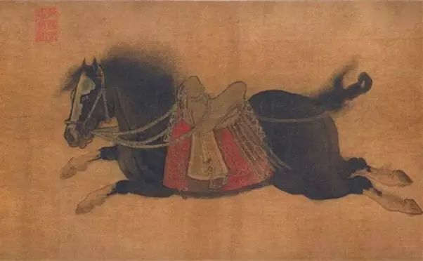 韩幹曾被唐玄宗召入内廷成为一名宫廷画家。当时宫中陈闳以画马荣遇一时,玄宗令韩幹师之,幹不奉诏,谓“臣自有师,今陛下内厩马,皆臣之师也”。可见,韩幹画韩幹注重写生,以真马为师,虽宗法曹霸而有出蓝之誉,在艺术上取得了巨大成就。其画马骨肉停匀,壮健神俊,穷其殊相,被誉为“古今独步”。