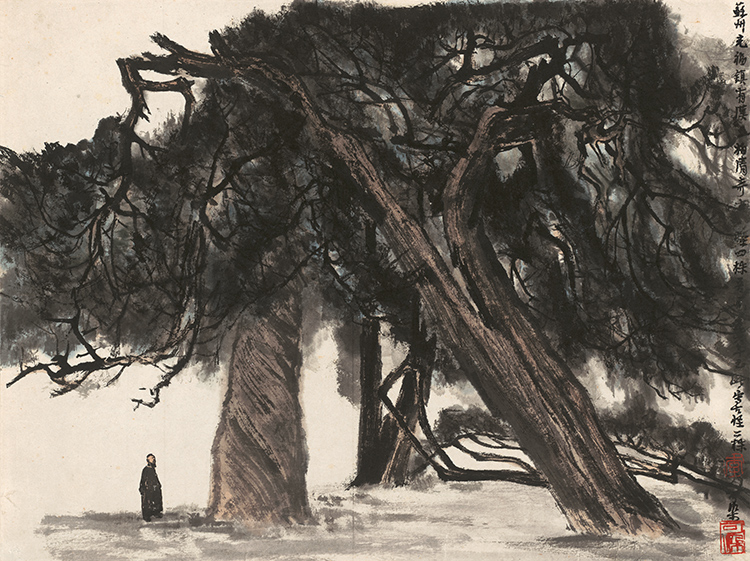 1943年——应重庆国立艺专校长陈之佛邀请,任中国画讲师至1946年9月。在此期间,致力于中国画教学和研究,主攻山水、古典人物、牧牛图。对民族传统,提出"用最大的功力打进去,用最大的勇气打出来",并以此为座右铭。是年,迁居国立艺专宿舍,屋后竹林生发幼竹,伸展入画室,嫩叶新绿拂于案旁。古人有云"何可一日无此君耶。"遂自命画室为"有君堂"。