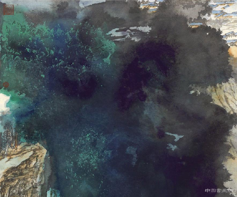 《桃源图》局部 1982年,张大千,纸本泼墨泼彩,立轴,纵209厘米,横92.2厘米