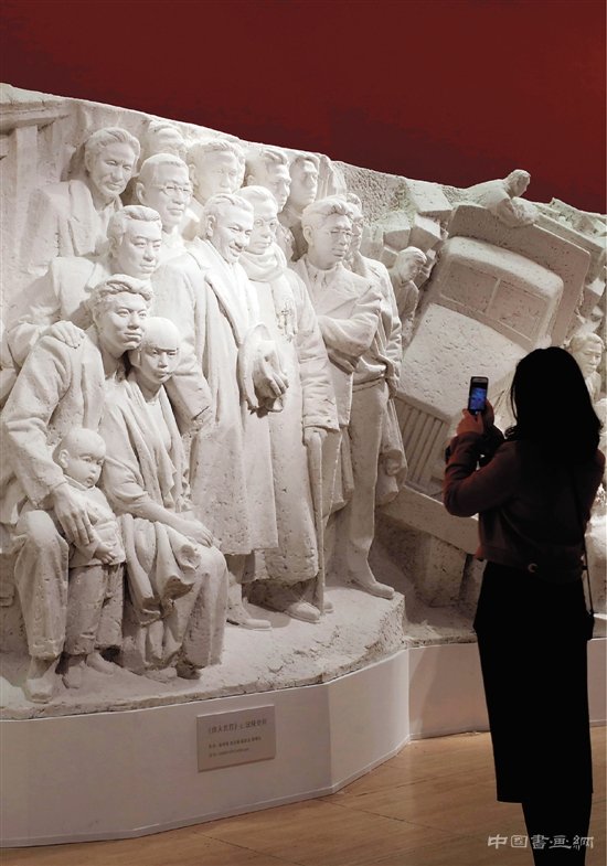 观众在“烽火艺程——沅陵会师”主题浮雕前驻足欣赏