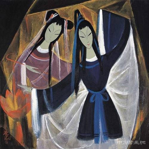 上世纪50年代初,林风眠探索和借鉴西方立体主义的方法,创作了大量以女性为主要描绘对象的“戏画”,如《红娘与莺莺》《贵妃醉酒》《白蛇传》《宝莲灯》《南天门》等。