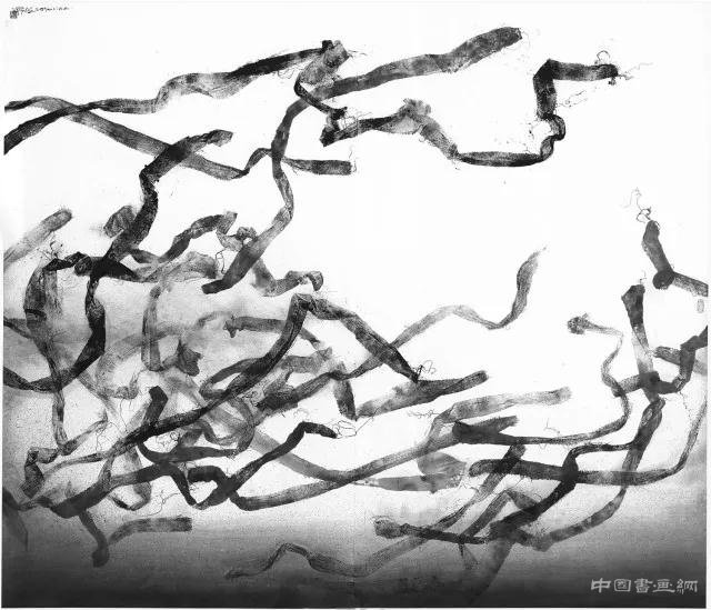 《痕·象》系列是我2016年的新创作,它与我之前的《缠》作品有关,在《缠》这一装置作品中,我应用纱布绷带包扎缠绕铁丝网,包扎的行为过程也成为了一件行为录像作品;而在“痕·象”系列作品中,纱布绷带线头的印痕与水墨的渲染,及与报纸、宣纸之间的现实和文化信息等,构成了对伤害与保护、修复与升华等的隐喻。细腻、脆弱、敏感的印痕,与画面纵横恣肆流动的线条块面及墨团水点,形成丰富而微妙的对比性语言。这一些无不流露着我对现实与生命的一种特别关注和关怀。