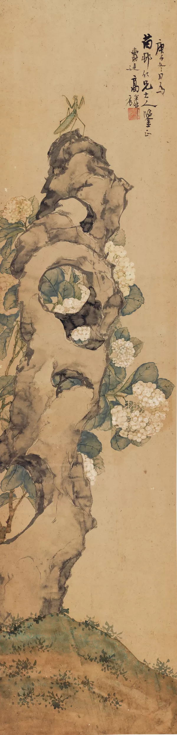 《花卉四屏之绣球花》 高剑父 133x33cm 1900年 纸本设色
